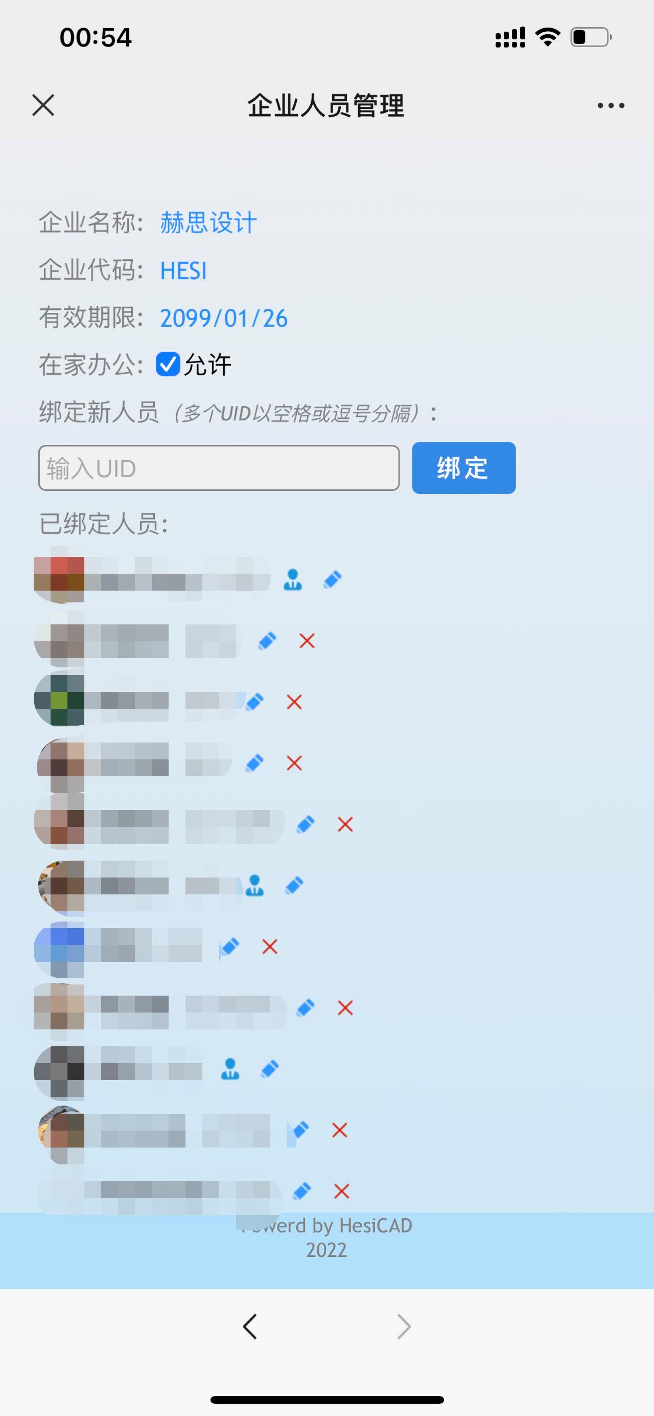 企业用户(含创业版)可指定若干名管理人员,企业管理员在赫思CAD微信公众号的用户中心管理公司成员,包括:
